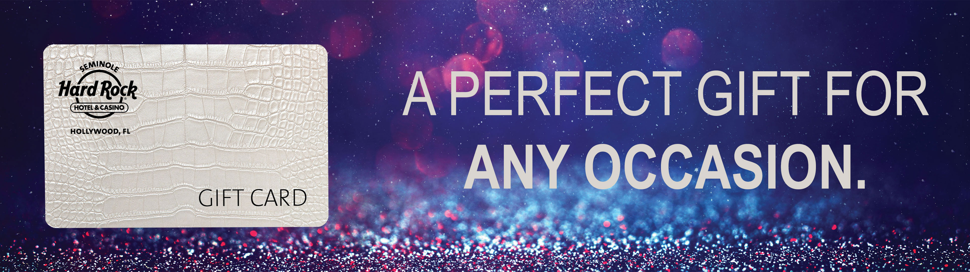Share the Seminole Hard Rock Hollywood experience with friends and family. Seminole Gaming Gift Cards are redeemable for dining, hotel accommodations, entertainment and spa. Gift cards cannot be used for slot play or to purchase casino chips.