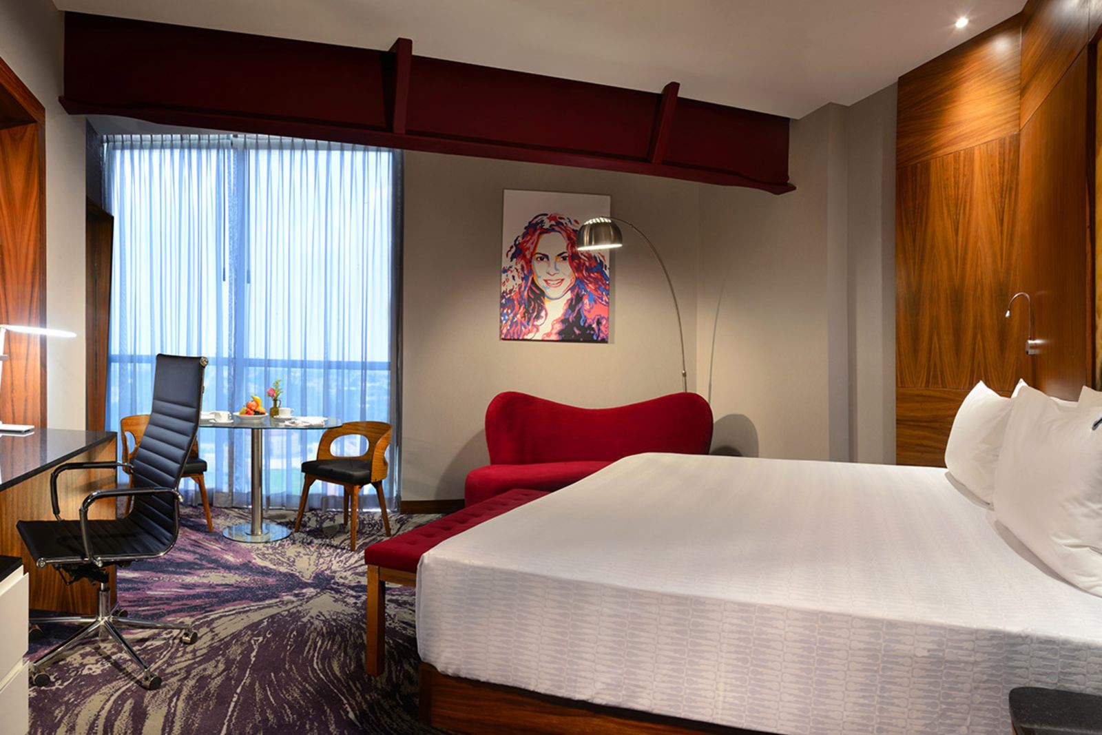 Go behind-the-scenes with our hotel photo gallery, showcasing vibrant guest rooms with The Sound of Your Stay® amenities, two-tone bathrooms with Rock Spa® products, weight training and cardio machines at Body Rock® Fitness Centre, and fashion-forward threads at Rock Shop®.