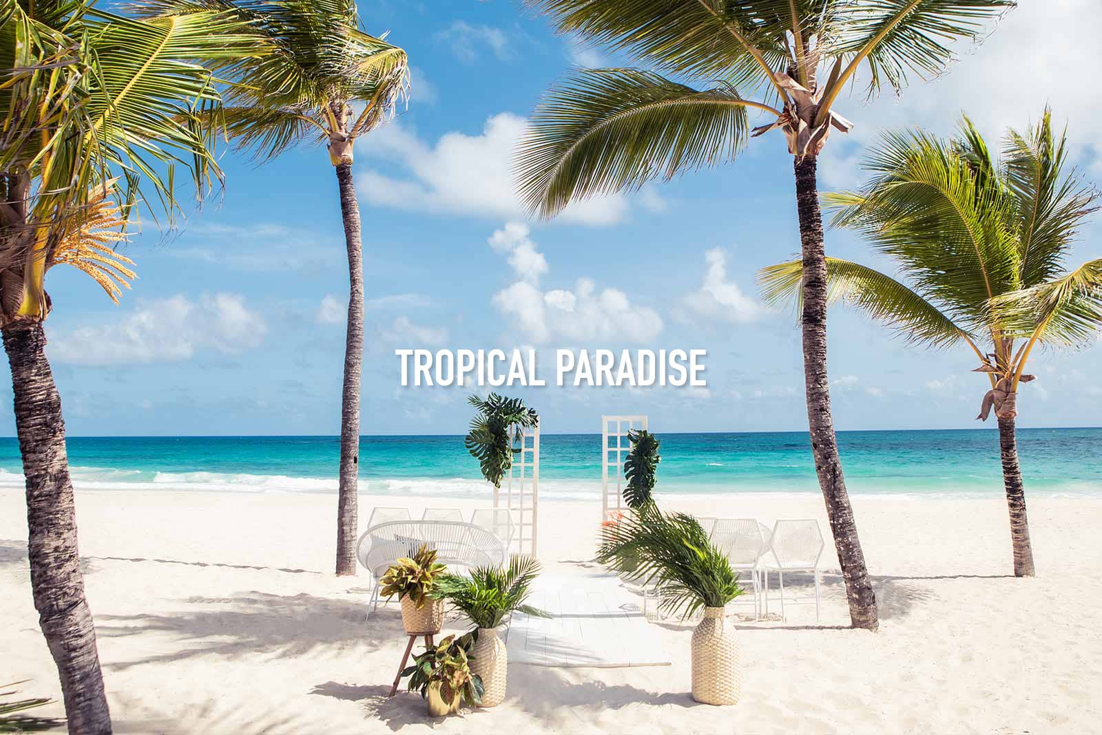 We’ve crafted our wedding collections to both perfectly accent our beautiful venues and to be fully customizable. Decide on your destination, pick and choose between the natural greenery of Free Spirit, the lush accents of Tropical Paradise, the elegance of Modern Enchantment and the romantic touches of Lavish Daydream, and get ready to get lost in the magic of your moment.