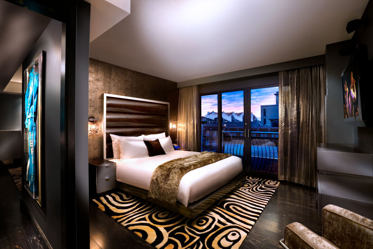 Designed by renowned architect, Graham Downes, known for his design of world-class hotels and residences, the Diamond Rock Star Suite, features 1,200 square feet of luxurious indoor and outdoor space, including a spacious wrap-around terrace and private hot tub for relaxing under the stars.