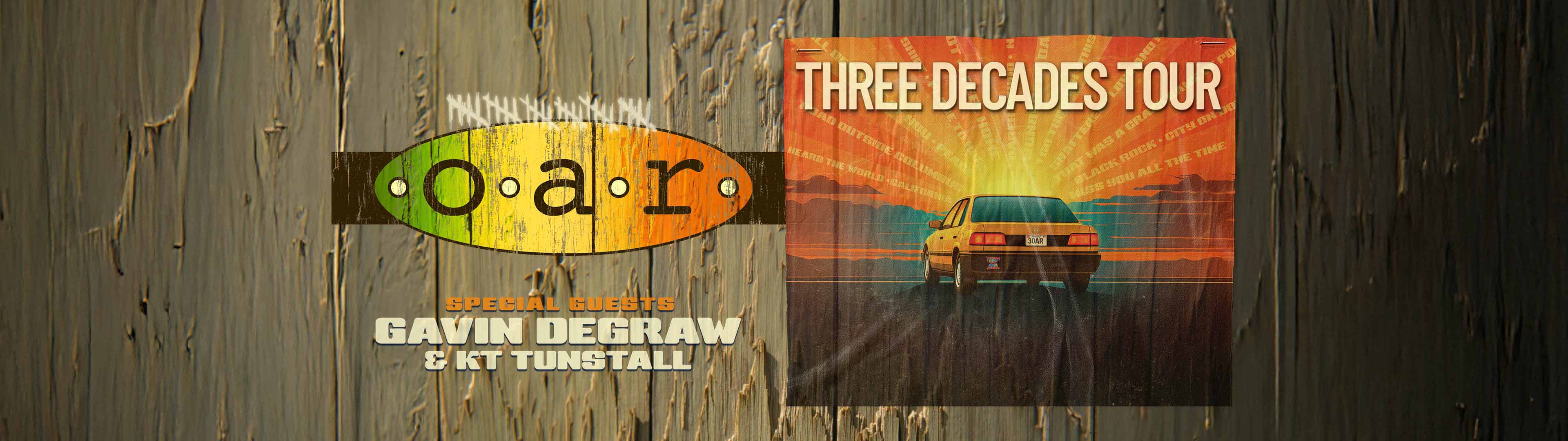 It’s unbelievable that O.A.R. are still together thirty years since their first gig at an eighth grade talent show, but these musicians are no strangers to “unbelievable.” In fact, they’ve quietly shattered expectations at every turn over the last thirty years. Their journey may have started in Maryland, but it’s taken them around the world with multiple sold-out shows at Madison Square Garden and Red Rocks Amphitheatre, north of 1 billion streams, and multiplatinum success. Creating an expansive catalog beginning with 1997’s The Wanderer, they earned RIAA Gold certifications, three Top 15 Billboard 200 debuts, and collaborated with everyone from Robert Redford and Goo Goo Dolls to Wiz Khalifa and DJ Premier. Their latest album, The Arcade, features the fan favorite “In the Clouds.” O.A.R. members, Marc Roberge and Jerry DePizzo, are also founding partners of the Oceans Calling Festival in Ocean City, Maryland, a world-class, multi-day celebration of music and community. Working alongside and driven by their talented partner Tim Sweetwood and his team, they helped create a festival that has quickly become a cornerstone of Maryland’s cultural calendar, making a lasting positive impact on the community. “The true reward isn’t just in the music, it’s in the way it uplifts the community and shines a light on the great state of Maryland,” says Jerry DePizzo. Through their charity, Heard The World Fund, O.A.R. have raised millions for education, sustainability, and pediatric cancer causes. Heading into their 30th year in 2026, Marc Roberge, Richard On, Chris Culos, and Jerry DePizzo are still having a blast as brothers—and it shows every time they take the stage.