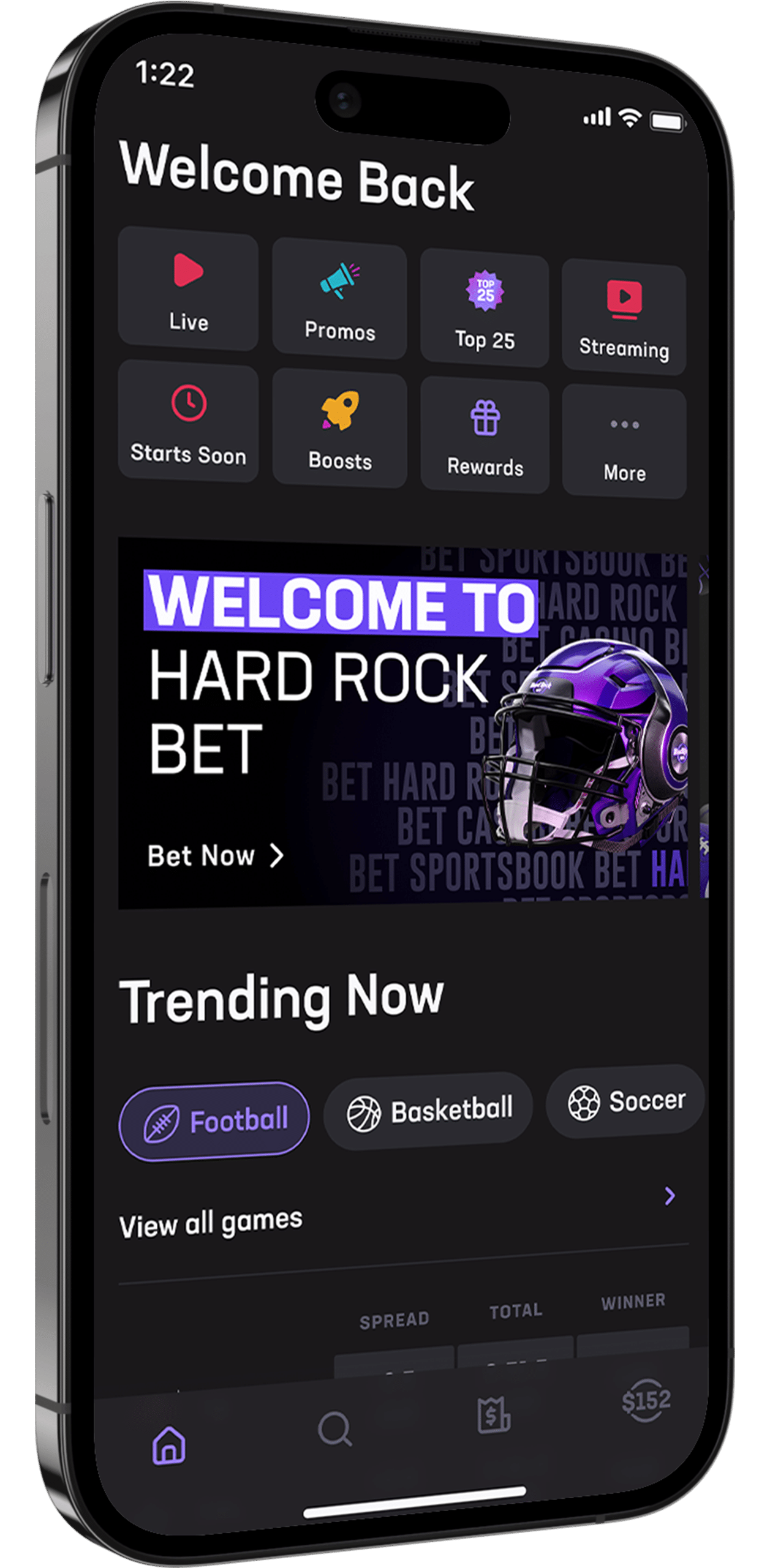 The Best Sportsbook With More Ways To Play – And Parlay! We have one of the highest rated online sportsbooks in the market with fun promotions, daily boosts, and more bets on all major sports like football, basketball, baseball, soccer, tennis, hockey, golf, auto racing, boxing, MMA, table tennis and more. You can get the most out of your gameday bets on our online web sportsbook and app with popular bets like Same Game Parlays, Play-by-Play bets, thousands of player prop and game prop bets, and more! No Hard Rock Bet promo code is needed during registration.